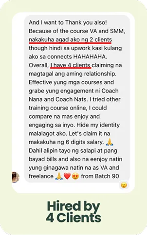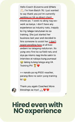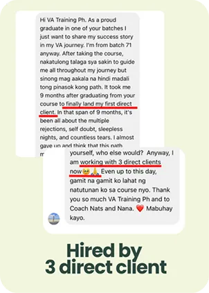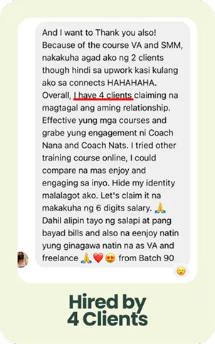 Determined to help others do the same, she started VA Training PH, a SEC-registered training center that has helped 4,000+ Filipinos—many of them complete beginners—launch confident, sustainable freelancing careers.